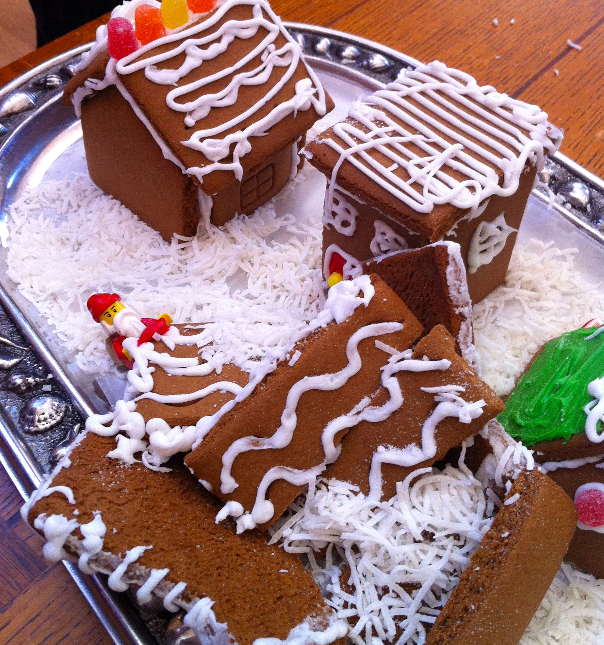 As if my prayer to St. Nick had been answered, a flawless plan to fix this debacle dawned on me. I tossed Santa under the rubble and turned our gingerbread village into the scene of horrific holiday tragedy. The unstable shanty had collapsed under the weight of the fat man himself. As Santa and his overstuffed pack lay under the remains of the decimated double wide, I sipped my latte with smug self-satisfaction. I diverted one holiday disaster by creating another. After all, the holidays aren’t about perfection. They’re about spending time with family, creating memories. We will always remember this year, the year Steve’s double wide collapsed and Santa saved the day.