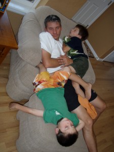 Upon arriving downstairs I see the boys pointing at something in the family room. Now what? Sure enough. There on the new rug was a large pile dog puke. Of course. Why not? It was going to be One of Those days. The deal was sealed. I struggled my way through clean up and got us out of the house quickly for fear that I might accidentally set the house on fire.