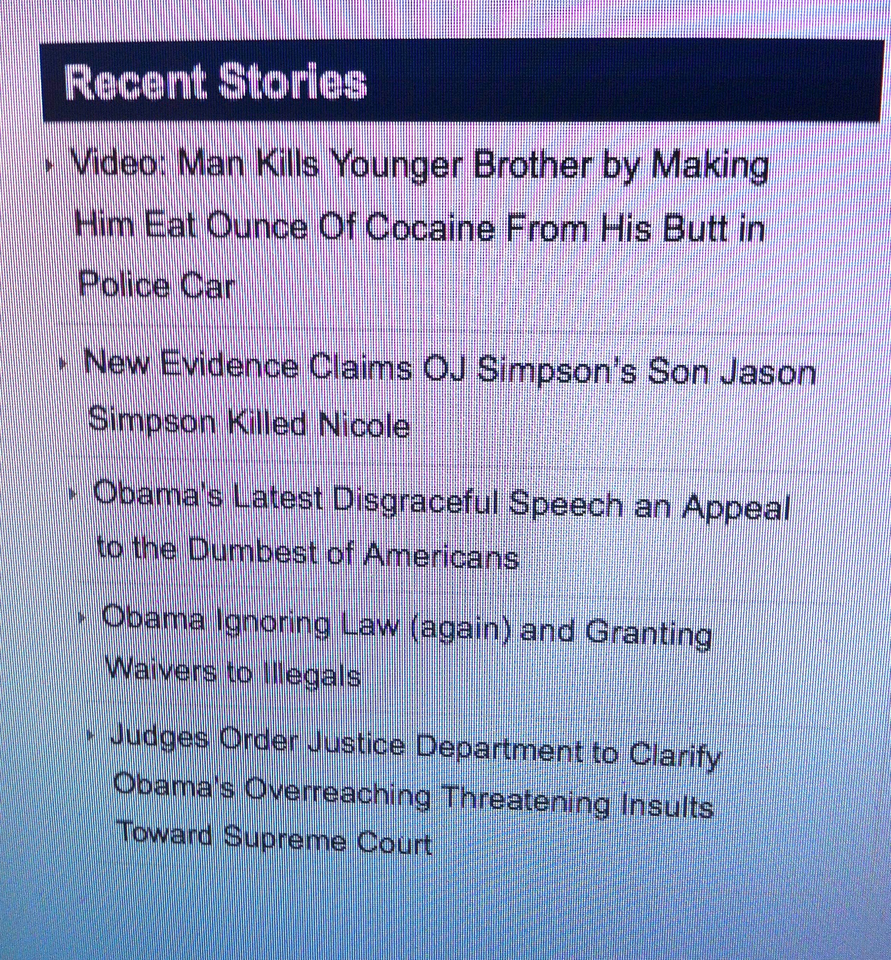Why does so little thought go into reading and critiquing these articles for fictional qualities before forwarding them on? I mean, how legitimate is an article from a “news” source that would also list this video on the same page as an article about the president: “Man Kills Younger Brother By Making Him Eat Ounce Of Cocaine From His Butt in Police Car”. Seriously? I can’t make this stuff up. Before you forward an email about the killer spiders lurking under toilet seats in public restrooms, please check your facts through Snopes. (The spiders don’t lurk, by the way.)