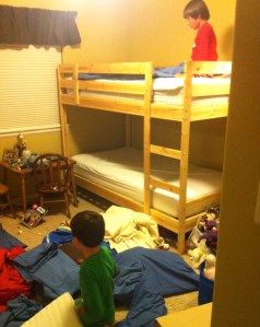 Last night our boys decided they no longer wanted the flannel sheets on their beds. We were downstairs cleaning up after our Easter festivities and, unbeknownst to us, they stripped the bedding off their bunk bed and then called me up to fix their problem. When I got upstairs, their entire bedroom floor was covered in blankets, dirty sheets, stuffed animals, and confusion. I was exhausted and annoyed.