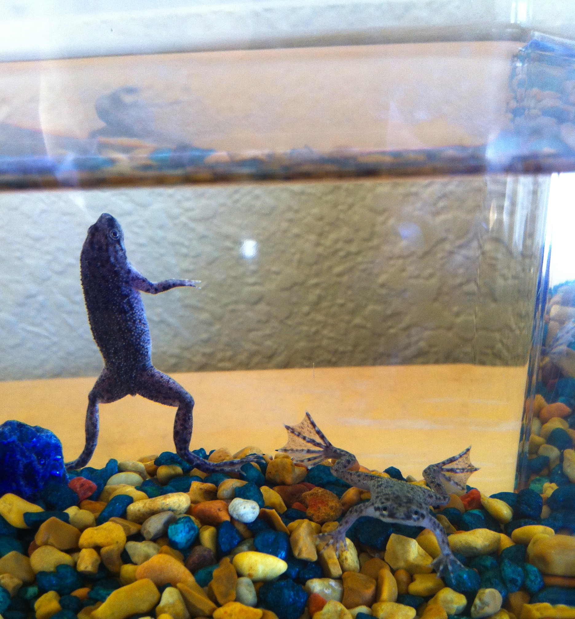 Characteristically, the frogs prefer to hang out on the bottom of the tank and swim up simply to get a breath or feed. It is unusual to see one floating on top, so I could understand Joe’s concern.
