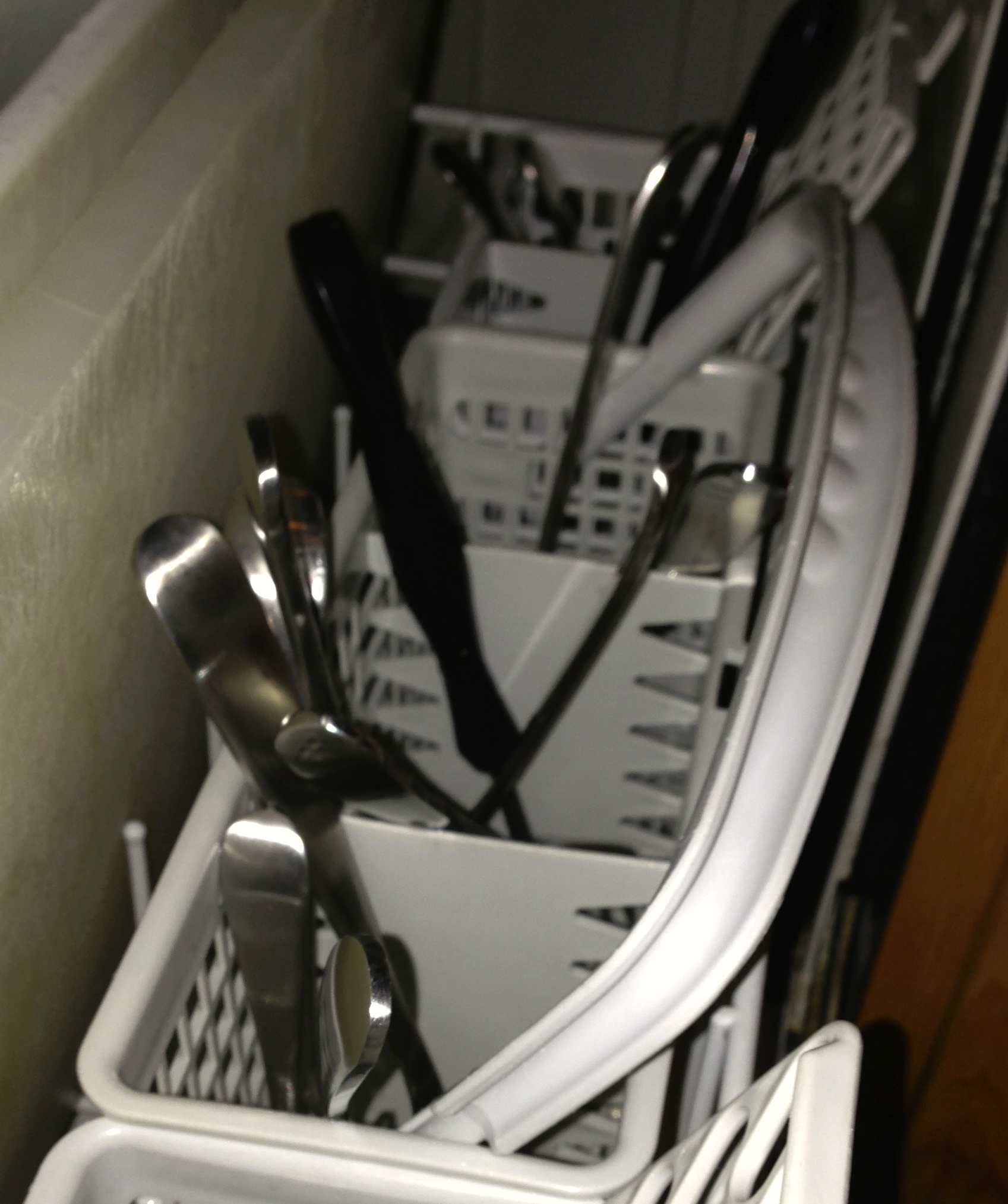 1. I have no idea if the phrase “mouth side” is correct. It was the only description my muddled brain could come up with. We too have a dishwasher basket with the cover. We just flip it up and avoid it. I agree with you on the nesting. You must be careful. But, still, I’ve never liked grabbing forks and spoons by their mouth side. It just seems to defeat the point of cleaning the surfaces. *sigh*