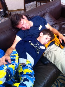 Now it might have been a bit naive on my part to take such an innocent gesture and ascribe to it such a grandiose meaning, but I don’t think so. Twelve years into this parenting gig with my husband and I don’t think I was wrong in my assessment. (Of course, I rarely think I am wrong about anything.) He is every bit as genuine and affectionate with our boys as his father is with him. From Day One he has been there for us. He never works more than 40 hours per work week. From the beginning he fed, changed, and bathed our boys without complaint. When they were sick, he was the first one to the thermometer to apprise the situation. When they puked up seemingly impossible amounts of pizza, fishy crackers, and juice, he disinfected the mess with the utmost courage and care and far less gagging than I ever could. He read The Hobbit to them, struggling mightily with the lengthy lists of names but muddling through undaunted. Many days after putting in his time at work, he arrived home excited to see us only to find that I was glassy eyed and already AWOL; instead of being selfish he took one for the team and fixed dinner, did dishes, made lunches, and put the kids to bed so I could regain some sanity. He cried with me when we identified copious obstacles our sons needed to overcome with fine and gross motor skills, speech and language, reading, and academics. He spent hours building and flying kites, untangling fishing line, finding the tiniest of Lego pieces in the largest of Lego storage buckets, and perfecting his driving skills on Mariokart Wii. He has given all that he is and then some for our little family. For all the times that he felt like he was a single parent doing more than 50% of the work in the house, he never balked or grumbled. He’s a far better person than I will ever be.