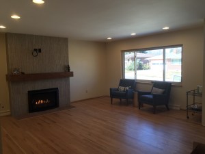 Can I fix you a Manhattan?In late December and early January we pulled out all the carpet, baseboards, and old doors on the main floor to have the original hardwoods stripped, patched, sanded, and coated with a water-based finish. The result is way better than we had hoped. The red oak has a lighter, fresher appearance without the heavy, oil-based finishing product. The fireplace insert arrived a few weeks ago to finish off the showpiece in our living room. The fireplace wall is exactly what we wanted. It makes the room seem taller, brighter, and more modern. We started adding a furniture this month too, purchasing a couple upholstered chairs, an accent table, and a bar cart, and ordering a loveseat and upholstered ottoman to complement the modern velvet sofa we will move over from our current house. It’s the first living room furniture we’ve bought since 1996. We were due for an update. And it’s no coincidence that the first furniture purchase is a bar cart and the first items we moved over were bar glasses and a significant share of spirits. It’s always 5 o’clock in a mid-century brick ranch!