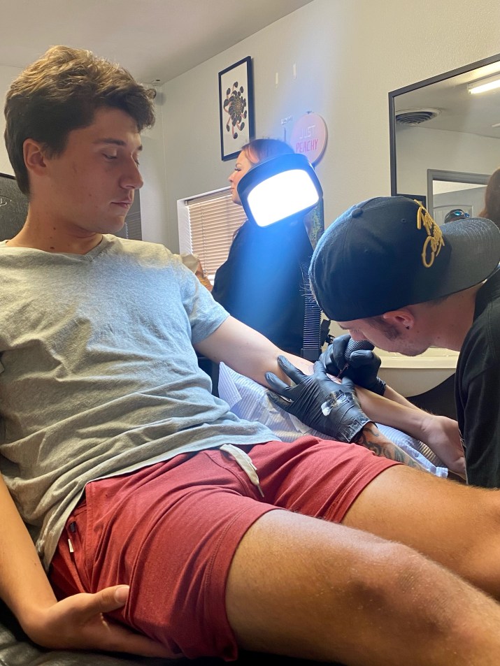 Today, Joe and I got our first tattoos. Before he came home from college in May, Joe gave me the list of things he wanted to do this summer, which included riding his bike over Vail Pass and hiking five 14ers. I asked him when we were going to get tattoos. He has been talking since his sophomore year of high school about it and has had his design picked out since that time. Back then, we told him it would be better if he waited until he was at least 18 before making what is a fairly permanent decision. And then, as the ubiquitous story goes, Covid hit. The tattoo idea got shelved. I think I brought it back up because I was looking for a partner in crime. Someone who I knew would be be wholeheartedly supportive while making sure I didn’t chicken out.