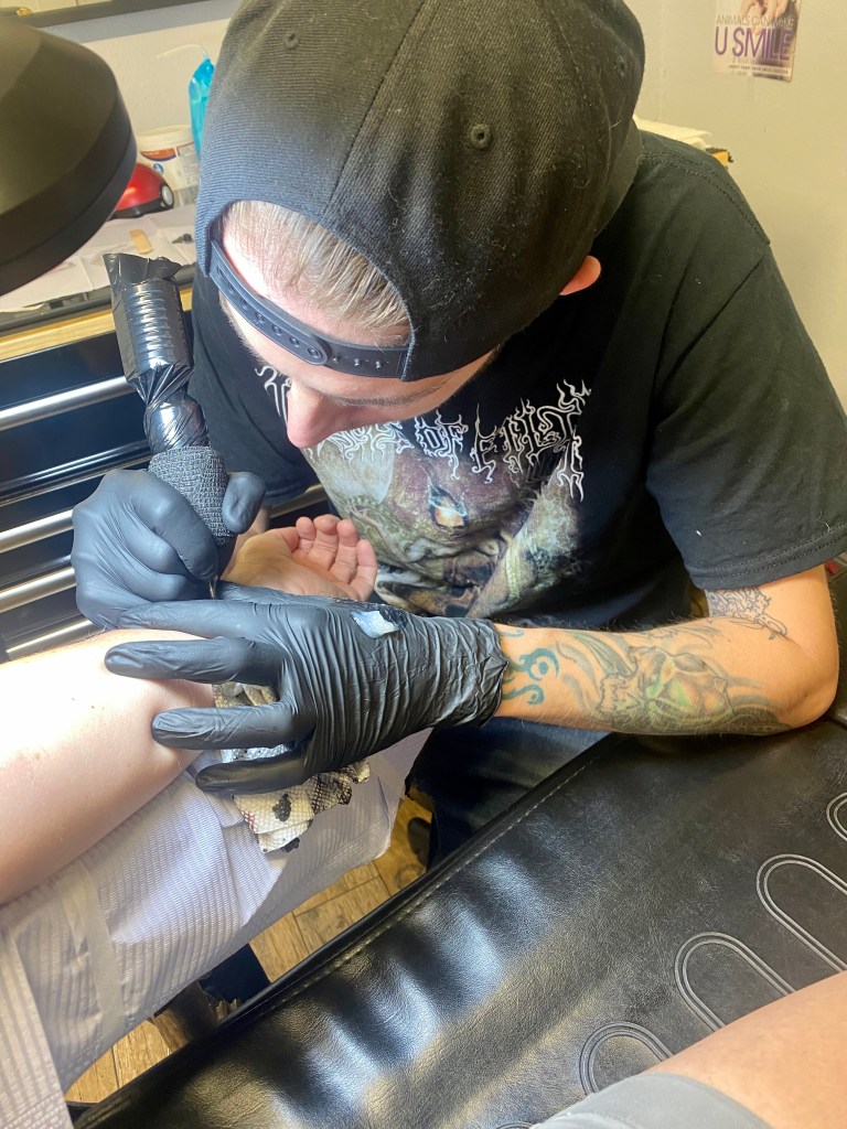 After doing some research and talking to a lot of people, we ended up going with a tattoo establishment about 20 minutes away from our home. The artist we booked with had recently done a tattoo for my friend’s daughter, and the tattoo she got was similar to the ones Joe and I were interested in. We needed someone we were confident could do a great job on clean lines, simple lines. Kevin at Clean Slate was exactly who we were looking for. His personal artwork and skill level go way beyond what we asked of him, so I felt a little guilty taking up his time with such simple work.