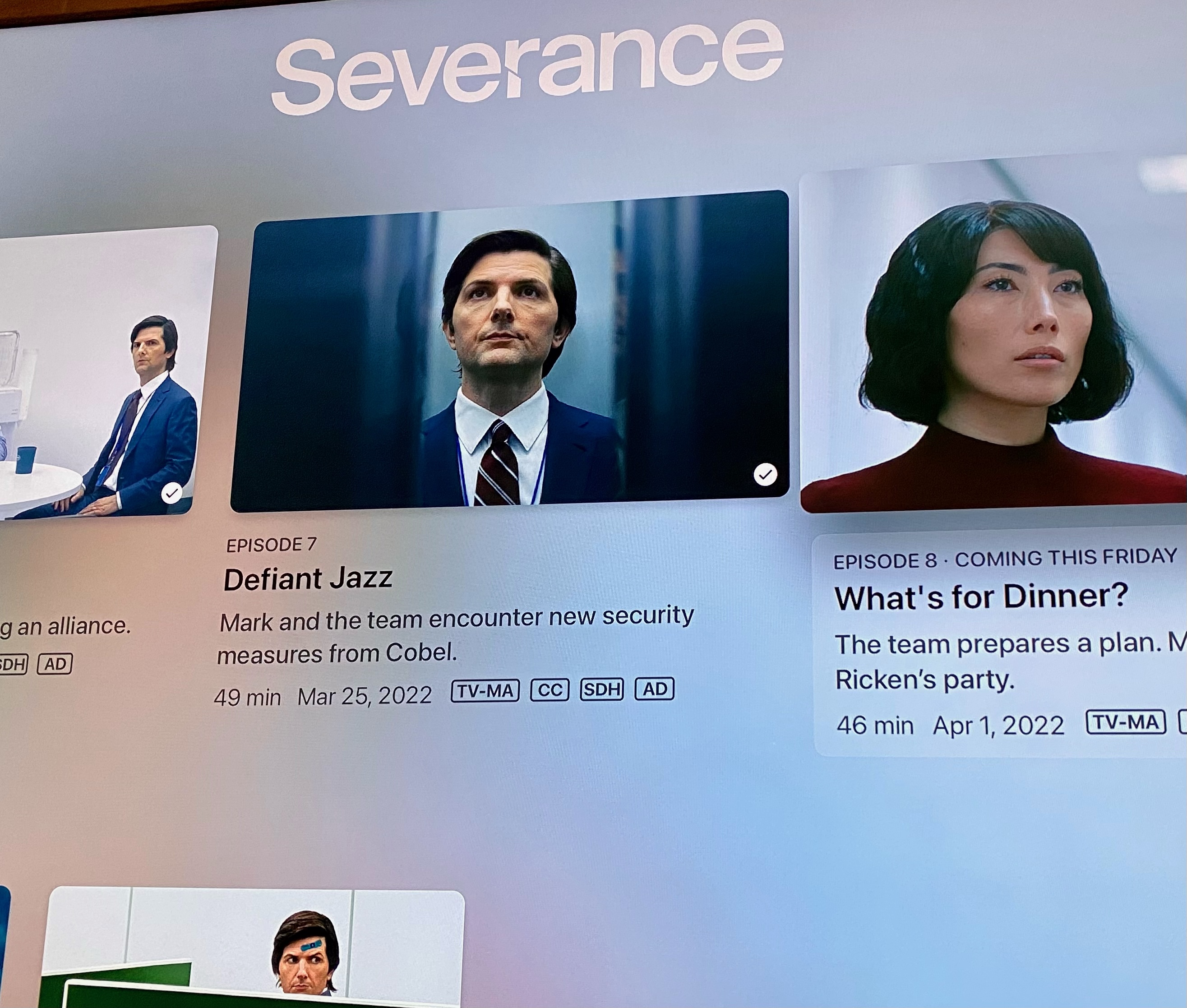 Anyway, while flipping through our choices that February night, I found Severance, a new show beginning that day on Apple TV+. The premise looked fascinating, so we figured we’d give it a go. At the end of the 57-minute premiere, we were hooked. We were feeling pretty smug about being early watchers of this brand new show. Maybe we could be the first ones out in front sharing the news? Each week since that night, we’ve looked forward to the next episode. With each episode, we became more engrossed and we told more people about it. Tonight we finished the latest episode, the seventh installment, and I found myself livid that I have to wait another week to see what happens next. And then I I remembered why we don’t get on board and watch shows in real time. It’s because we’re impatient.