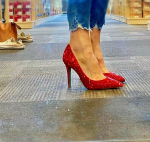Almost two years ago, I wrote here about a pair of Betsey Johnson, ruby-red heels I tried on in a DSW store. I thought they were amazing and was publicly debating the practicality of purchasing shoes I might only wear a couple times, if that. The proposition seemed, at best, frivolous and, at worst, appalling given the number of people in this world who have no place warm to sleep tonight. In the end, my logical brain (with its finely honed “who do you think you are/get over yourself, old woman” mantra) decided against those lovely red shoes. I’ve kicked myself a little over that decision every day since then. Not because I’ve had a plethora of occasions when what I needed to complete my grocery-store-trek ensemble was a pair of bedazzled, high-heeled ruby shoes, but because in not buying them I reinforced the message to myself that I don’t deserve to follow my heart or whims or treat myself like I merit being shiny and extra sometimes.