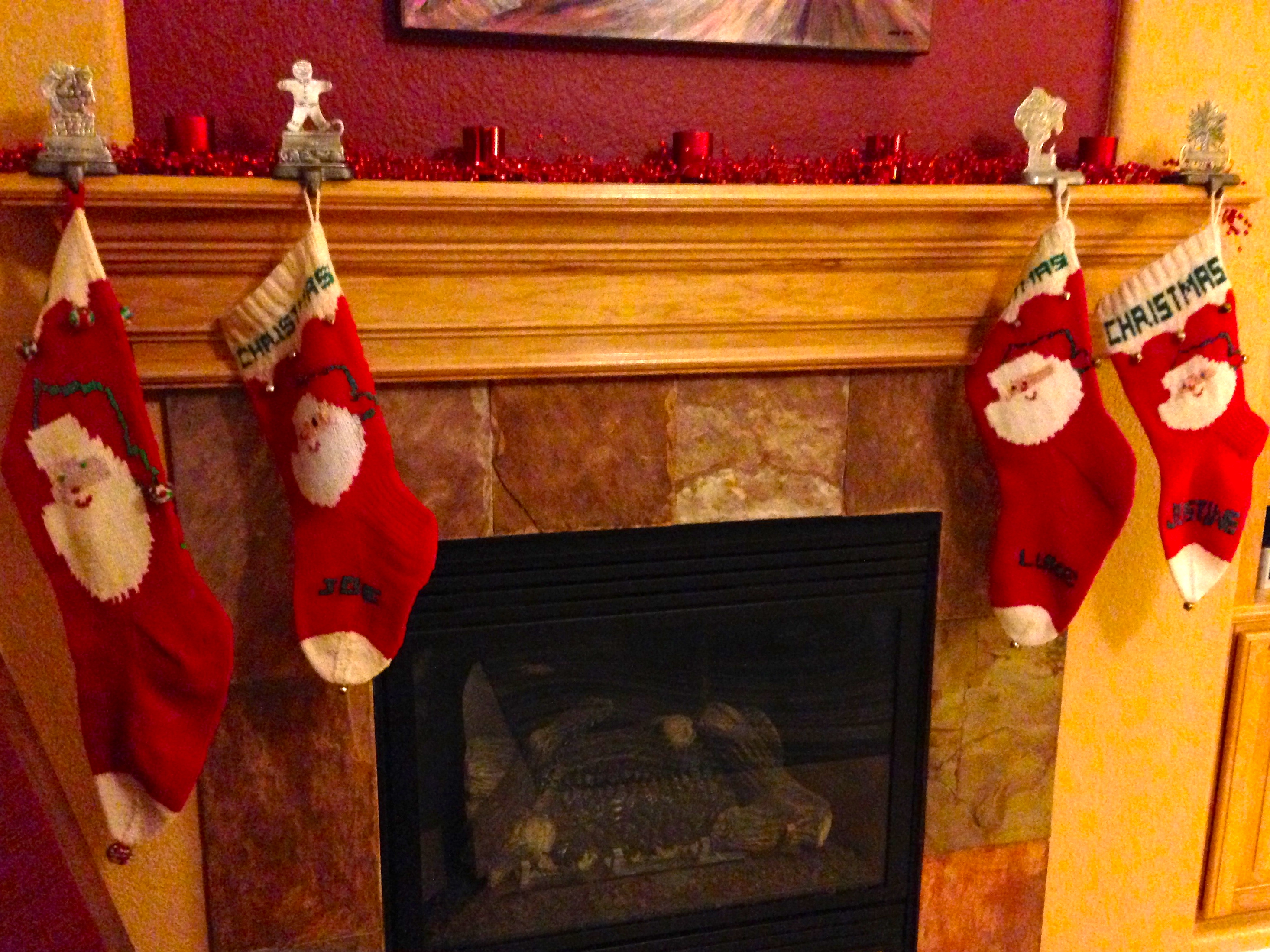 I’ve blogged a few times recently about traditions and about how we’ve struggled to create some for our little family foursome. Steve and I both came from families with fairly ingrained family traditions. When you start a new household, you ideally take some traditions from each side and then add to them or make them your own with a slightly different twist. One thing I looked forward to when Steve and I got married was picking out new Christmas stockings that would be unique to our household. Steve and I each had inherited the stockings we’d had with our parents. It sounds silly, I know, but I was adamant that I wanted us to start a new tradition for our family with matching stockings of our choosing. I couldn’t wait to purchase and hang our own stockings and to add to our collection of what would be hung by the chimney with care with each child we added to our happy home.