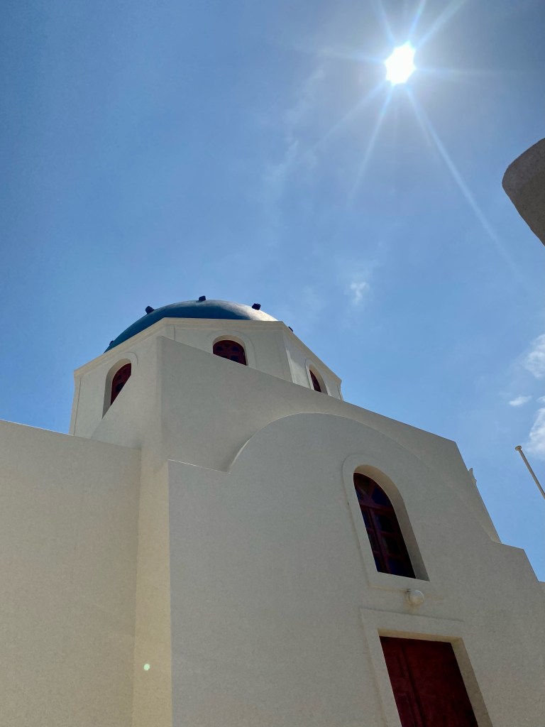 Santorini. Thira, if you prefer. Even if you don’t know her name, you recognize her from photographs of her whitewashed cave houses intermingled with striking, blue-domed roofs set against the Aegean Sea. She is iconic. Her stunning towns sit on the clifftop precipice of an ancient, sea-filled caldera of a volcano that erupted in 1620 BC. She is a photographer’s dream because it is nearly impossible for her to take a bad picture. I was over the moon when my family agreed to take a cruise to visit a few Greek islands because they have long been on my wish list. And the morning our ship floated into the caldera, my family and I were on deck to take it all in.