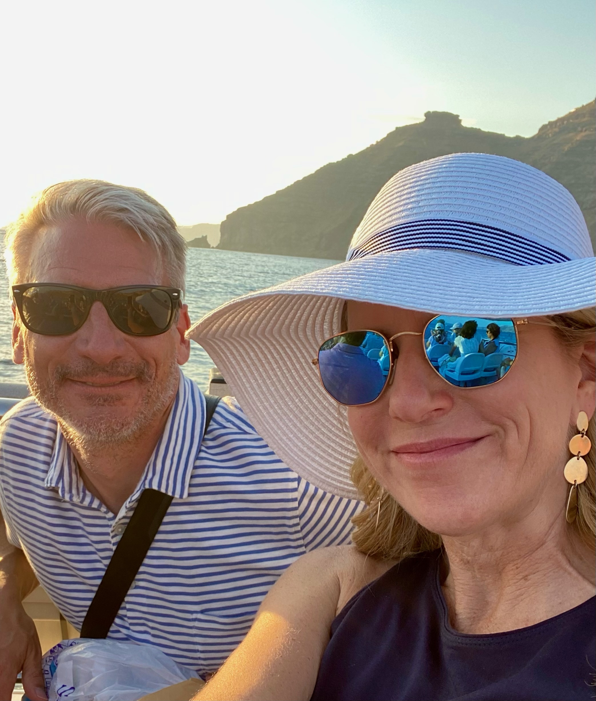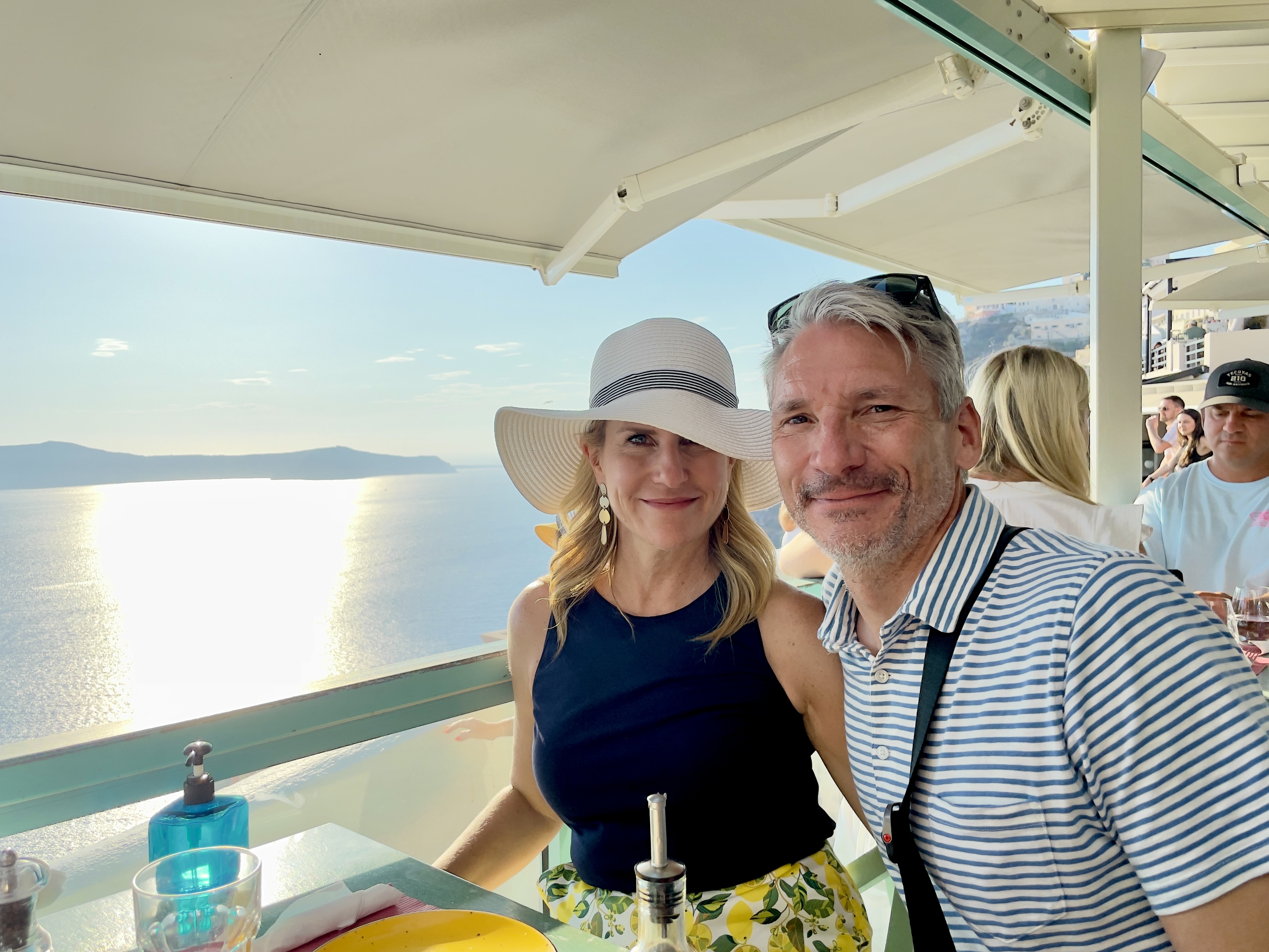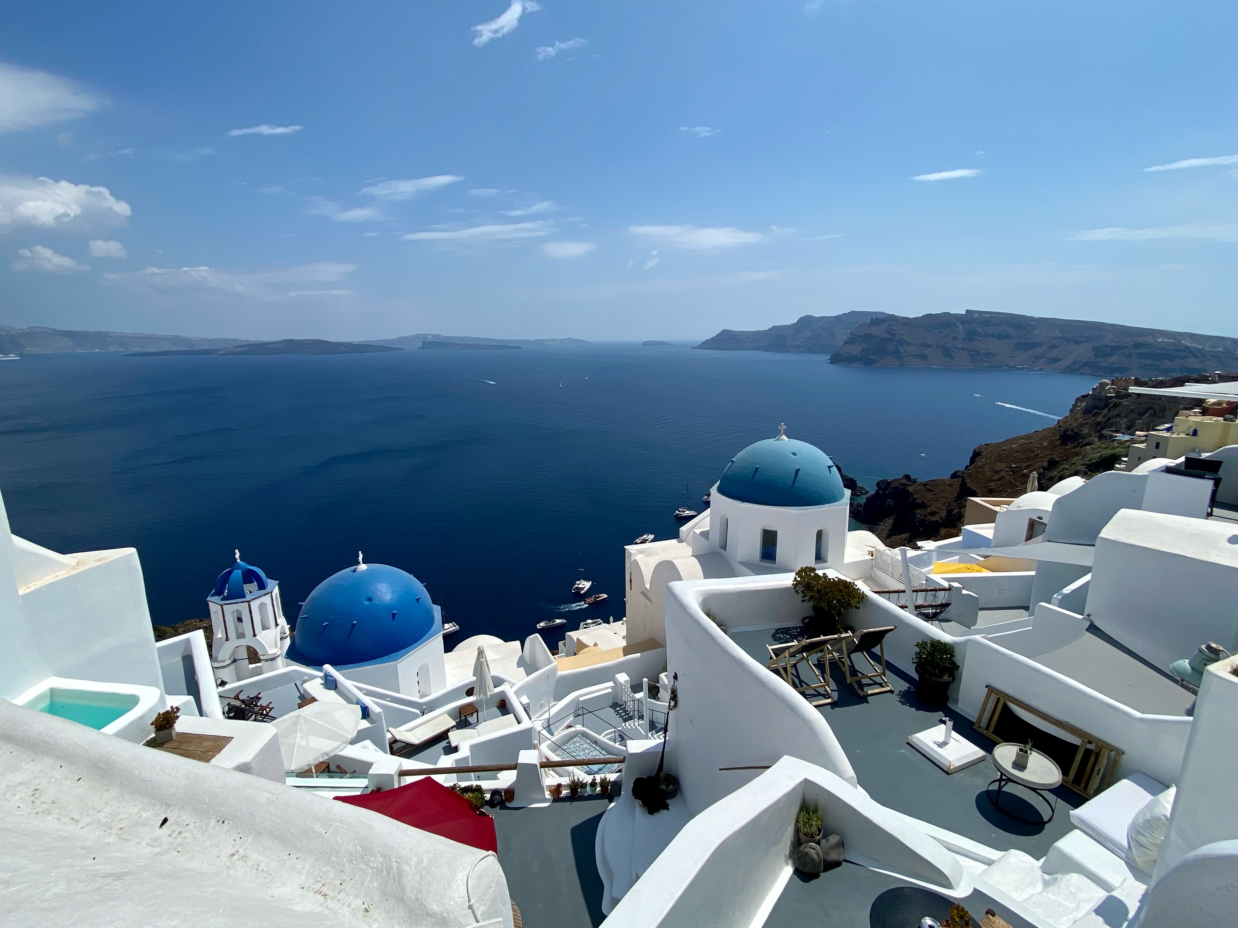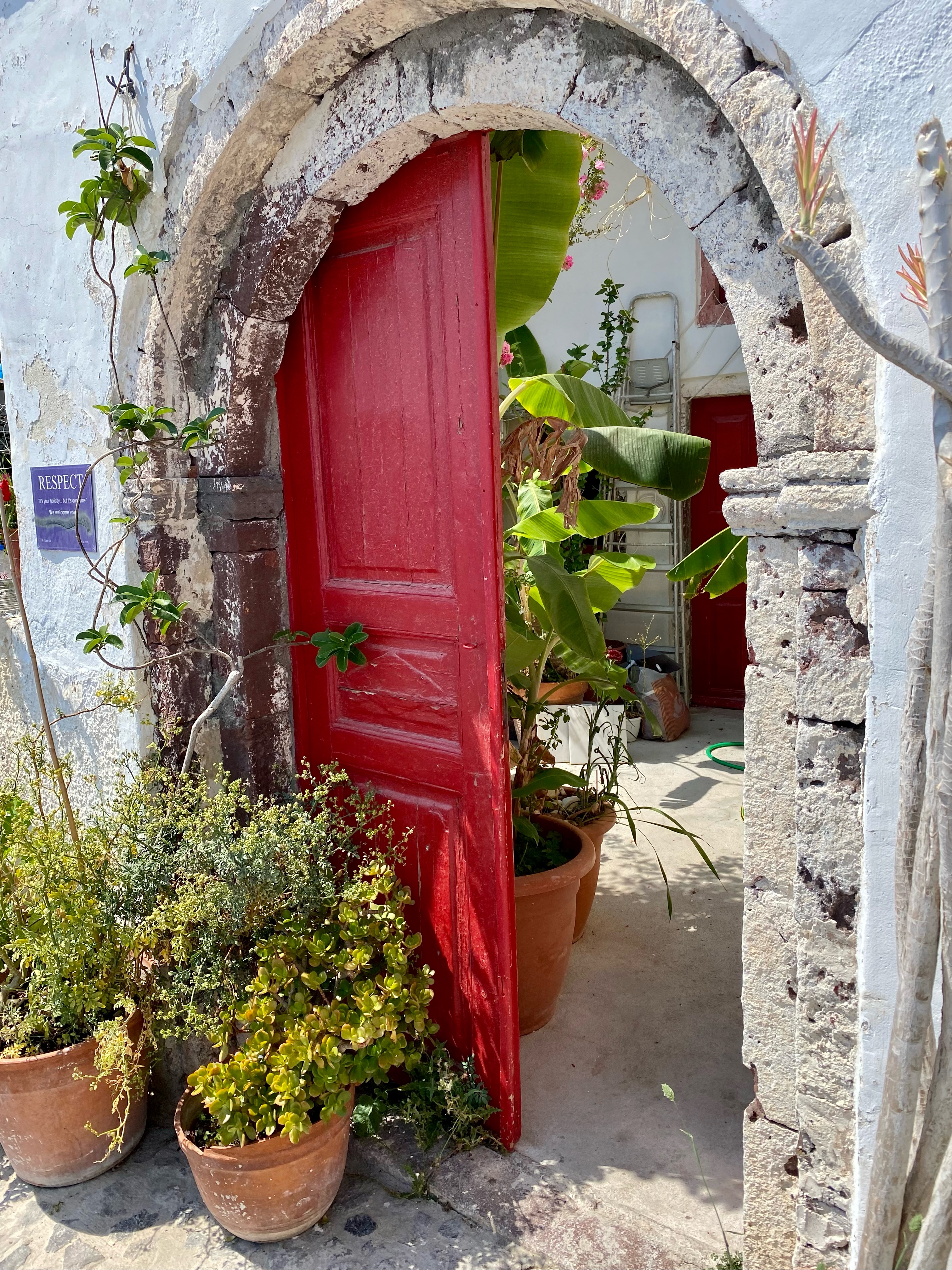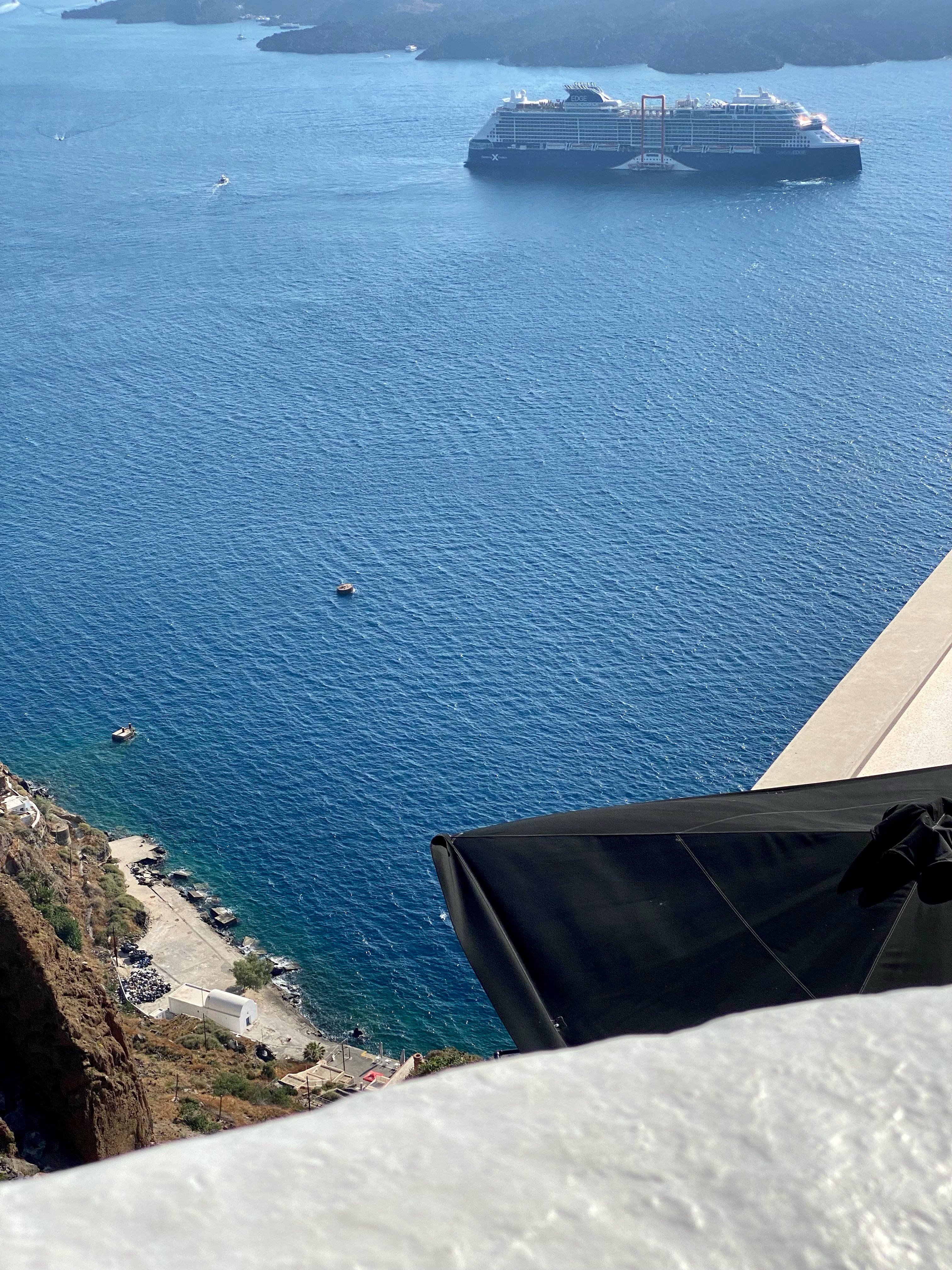 Santorini. Thira, if you prefer. Even if you don’t know her name, you recognize her from photographs of her whitewashed cave houses intermingled with striking, blue-domed roofs set against the Aegean Sea. She is iconic. Her stunning towns sit on the clifftop precipice of an ancient, sea-filled caldera of a volcano that erupted in 1620 BC. She is a photographer’s dream because it is nearly impossible for her to take a bad picture. I was over the moon when my family agreed to take a cruise to visit a few Greek islands because they have long been on my wish list. And the morning our ship floated into the caldera, my family and I were on deck to take it all in.