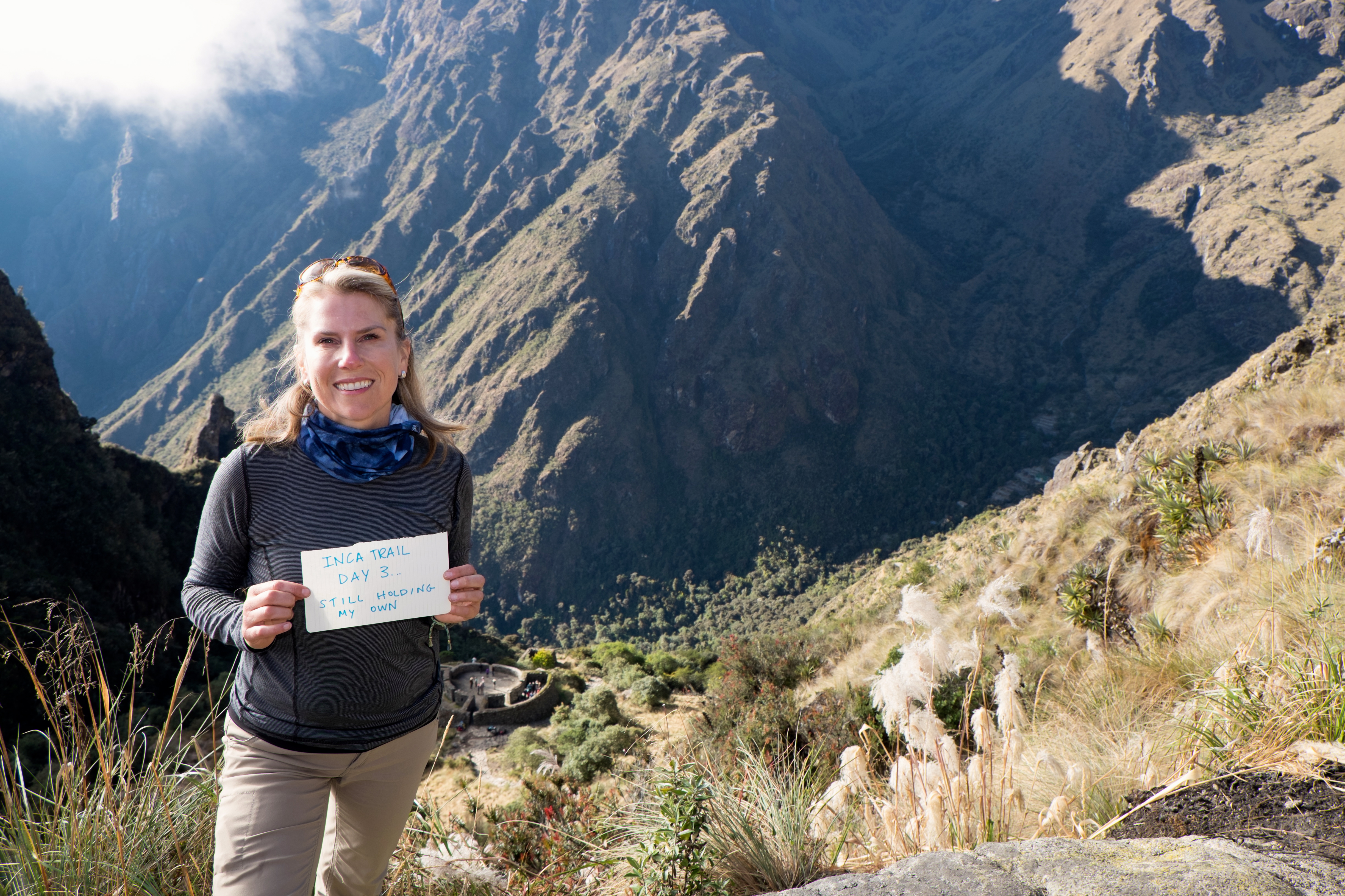 We tried several different paths to head in the direction we needed to go, but we kept going around in circles by following the arrow signs. Finally, the guys split off to try to get their bearings or perhaps get directions from someone (who’d have thought that possible?). Steve returned to tell the tale of how he’d found an English-speaking tour guide but felt bad for asking him the fastest way out of the ruins. I never imagined that during my time in Machu Picchu I would become so discombobulated and frustrated that I would be looking for the exit. Andrew and Steve had separately landed upon the same solution to our problem. We now had an exit strategy, so we began cruising in that direction.