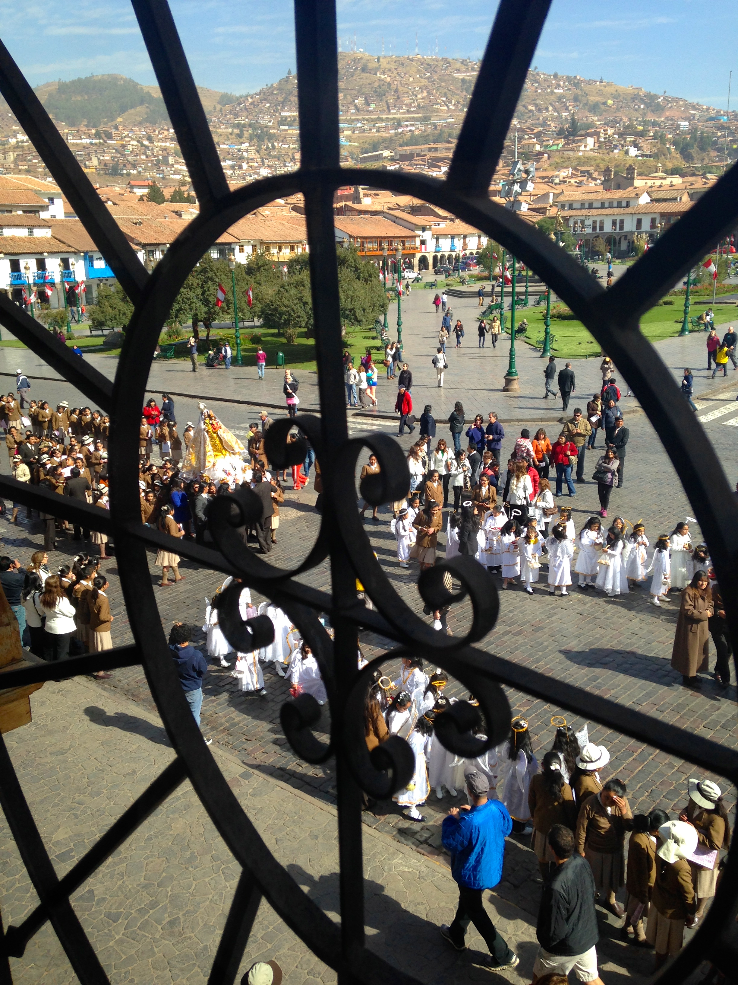 The tour landed us in the Plaza Mayor where streets were closed off for a political rally. At the same time, a local cathedral was also having a street parade with the requisite pageantry. The area was so congested that we had to disembark and walk for a bit, which was fine with us. We entered the main plaza where riot police were ready near the political rally, just in case. One thing we noticed quite often in Lima is the number of uniformed, armed police officers on the street. They are everywhere, on foot, on bike, on horseback, and on motorcycle. The Limeños are under constant surveillance. There are cameras everywhere. The police presence was far more noticeable than it is in the States. Oddly, the predominance of uniformed police officers made me feel more safe in Lima. I’m sure some could argue the opposite.