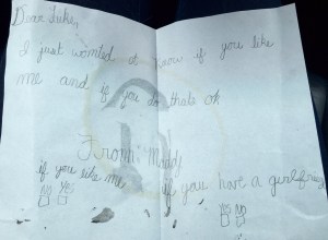 I have to hand it to my son. He’d found a way to get the answer he wanted without any help from his parents. His question to her was both flirtatious and charming. What 5th grade girl wouldn’t love that question after having received all the right answers to her own questions? And by making her respond on that same note, he’d worked it out so he could keep it forever as proof. He told me he’d wanted to be sure he’d end up with the note for posterity. The kid is a genius. I wondered if the poor girl had a clue what she was getting herself into.